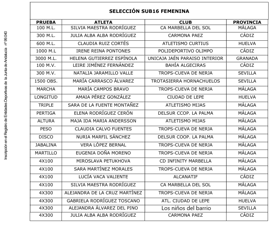 La rinconera Alejandra Alvarez del Pino estará en el Cpto España por federacion autonomicas (sub16), el proximo 4 y 5 de Octubre en LA NUCIA (ALICANTE) para ser integrante del equipo de relevos 4x300m.