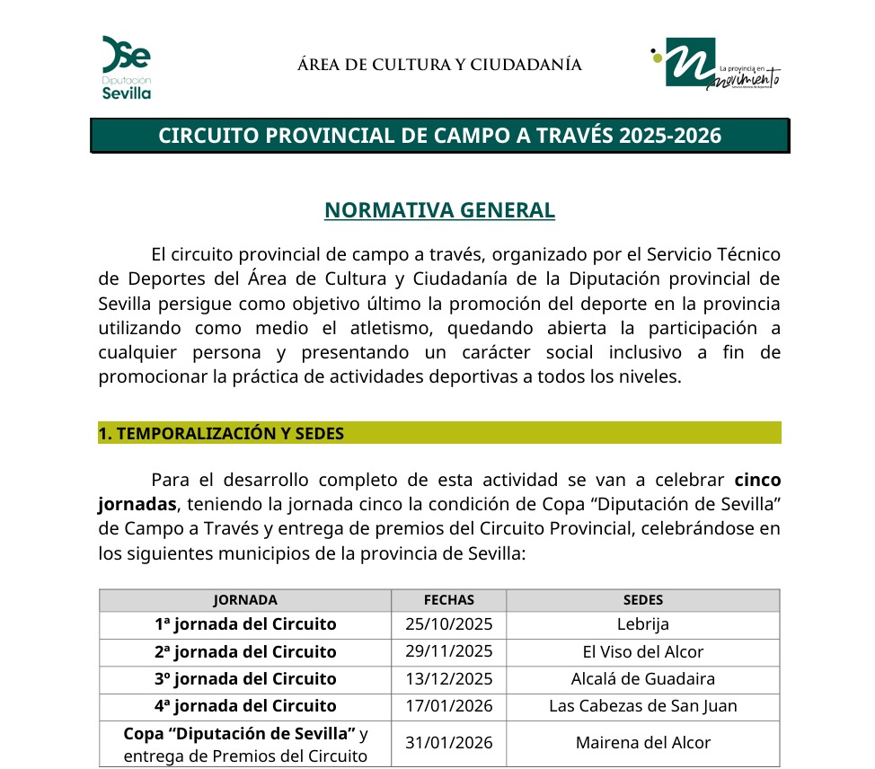 Carreras de campo a través del circuito de DIPUTACION DE SEVILLA, con posibilidad de ir en bus gratuito puesto por la organizacion.