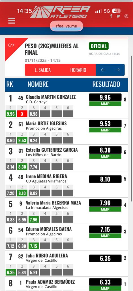 Estrella Gutierrez, obtiene un buen lanzamiento de 8.30m en el lanzamiento de peso 2kg del Andaluz Occidental celebrado en Algeciras y 11º en el 500m.
