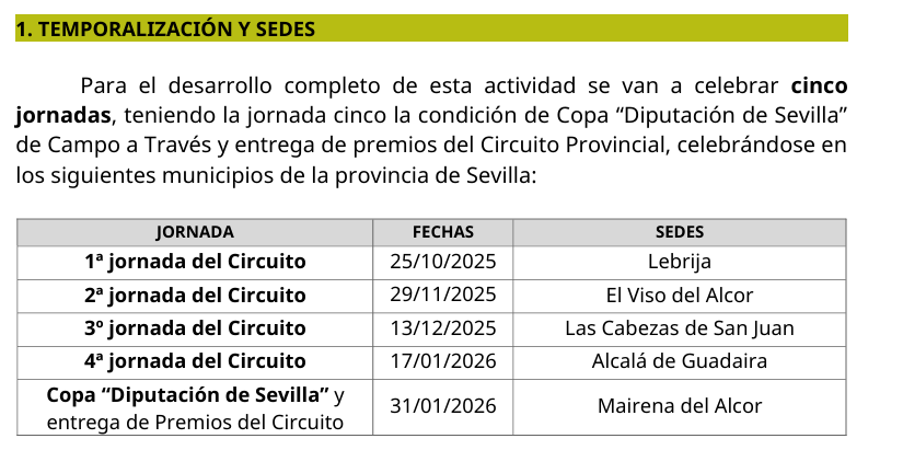 Carreras de campo a través del circuito de DIPUTACION DE SEVILLA, con posibilidad de ir en bus gratuito puesto por la organizacion.